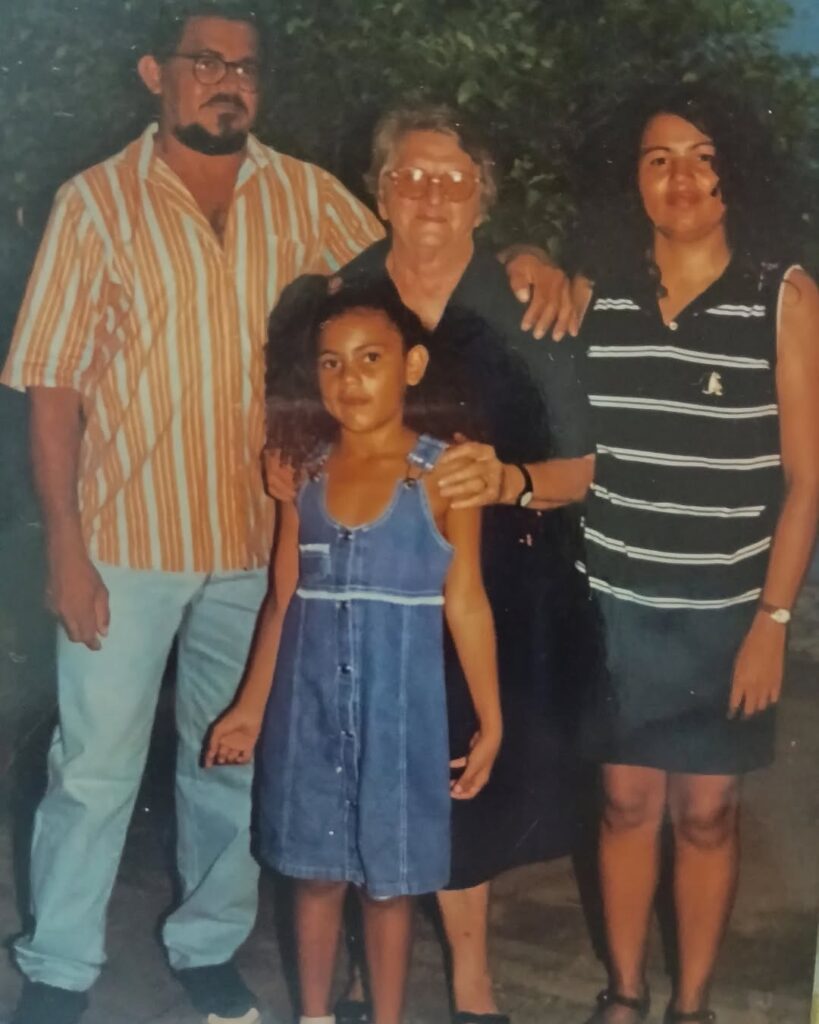 Na foto: Professor Bosco (pai da vereadora Jeska), Irmã Teresita, Aparecida (mãe da vereadora Jeska), a criança é a vereadora Jeska Fernandes (8 anos).