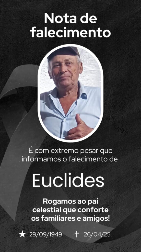 O presidente da Câmara Municipal de João Câmara, vereador Fernando Guilherme, manifesta profundo pesar pelo falecimento do senhor Euclides, ocorrido no último dia 26 de abril de 2025.