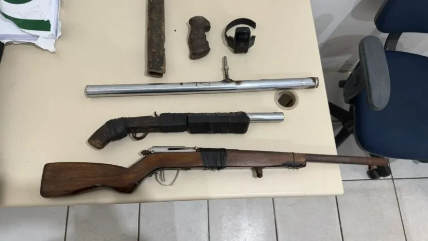 Durante a ação, os policiais localizaram o suspeito ainda na comunidade. Com ele, foram apreendidas duas armas de fogo artesanais — uma delas pode ter sido usada no crime — e uma tornozeleira eletrônica rompida.