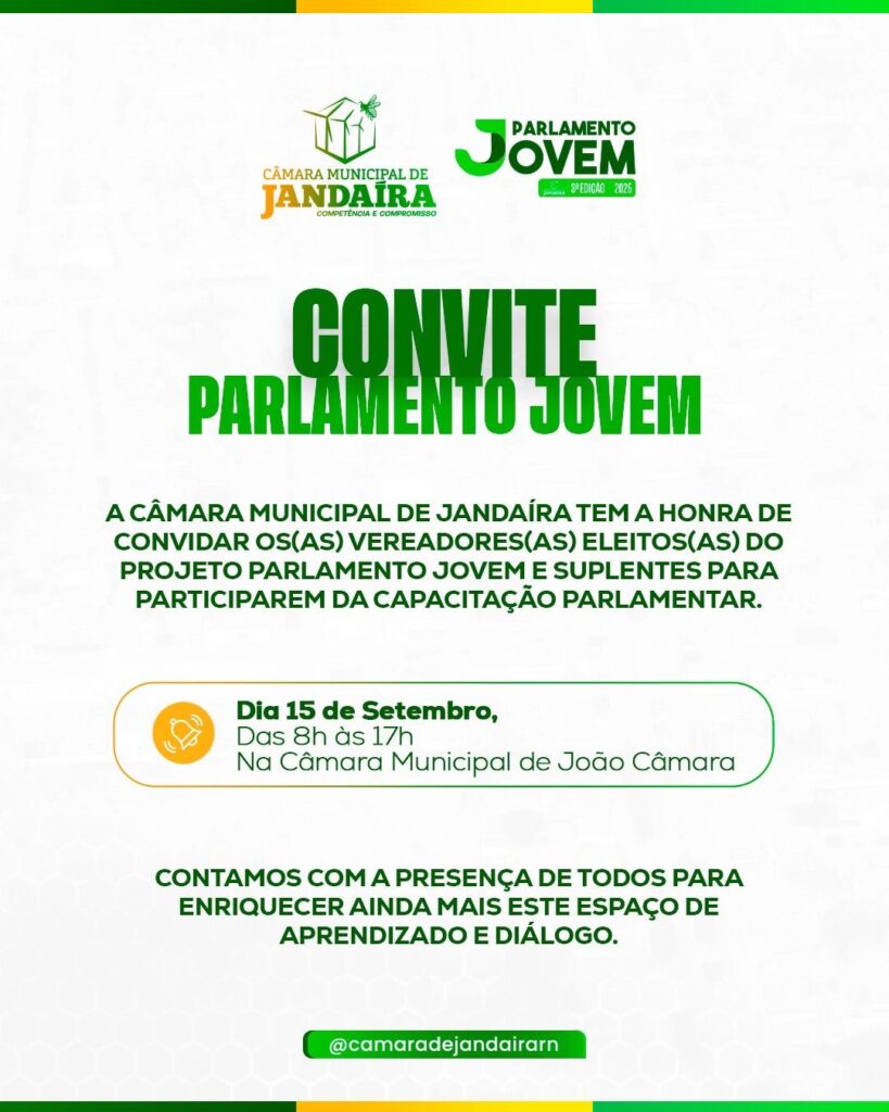O Parlamento Jovem 2025 convida os(as) estudantes eleitos(as) para participarem da Capacitação Oficial!