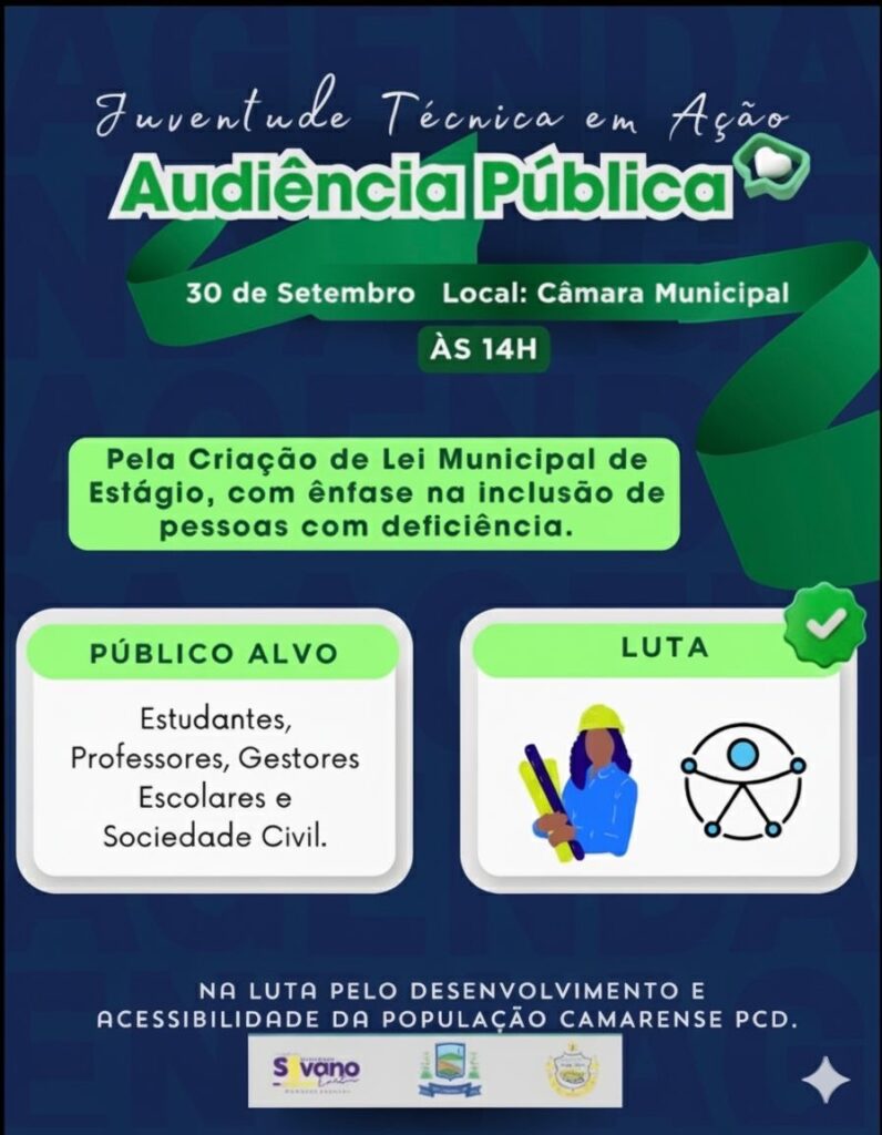 A audiência é aberta a estudantes, professores, gestores escolares e à sociedade civil em geral, que poderão contribuir com ideias, sugestões e propostas para a construção de uma política pública inclusiva e transformadora. Participe desse importante debate e ajude a promover o desenvolvimento e a acessibilidade da população camarense!