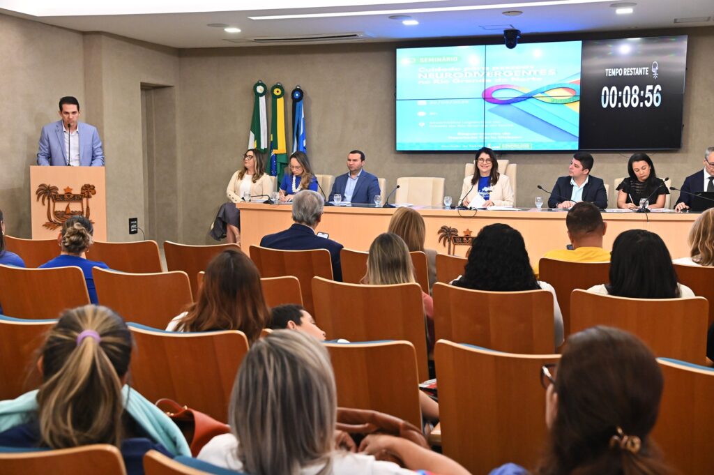 Durante sua participação no seminário Linhas de Cuidados para pessoas divergentes, deputado Kleber Rodrigues (PSDB) citou os avanços na legislação do RN direcionadas à pessoa com deficiência e aos neurodivergentes. O evento está sendo realizado na Assembleia Legislativa (ALRN) na manhã desta sexta-feira (26), no auditório Cortez Pereira.