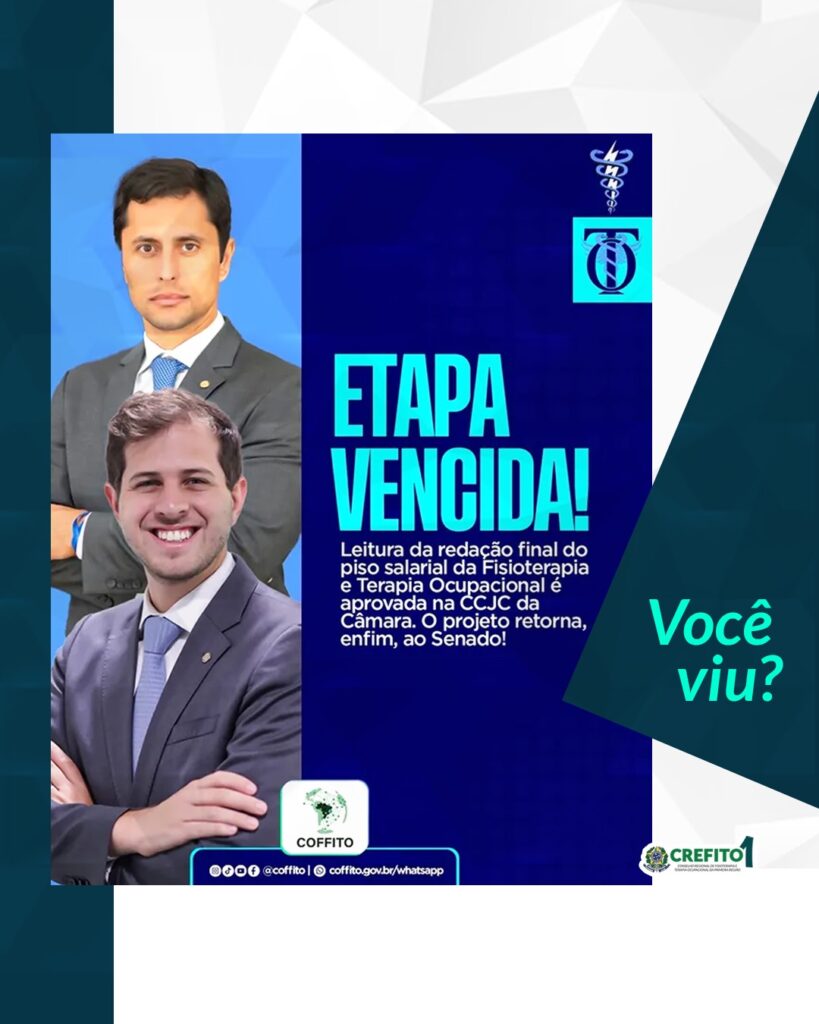 A Comissão de Constituição e Justiça e de Cidadania (CCJC) da Câmara dos Deputados aprovou (30/09) a leitura da redação final do projeto de lei que institui o piso salarial nacional dos fisioterapeutas e terapeutas ocupacionais.