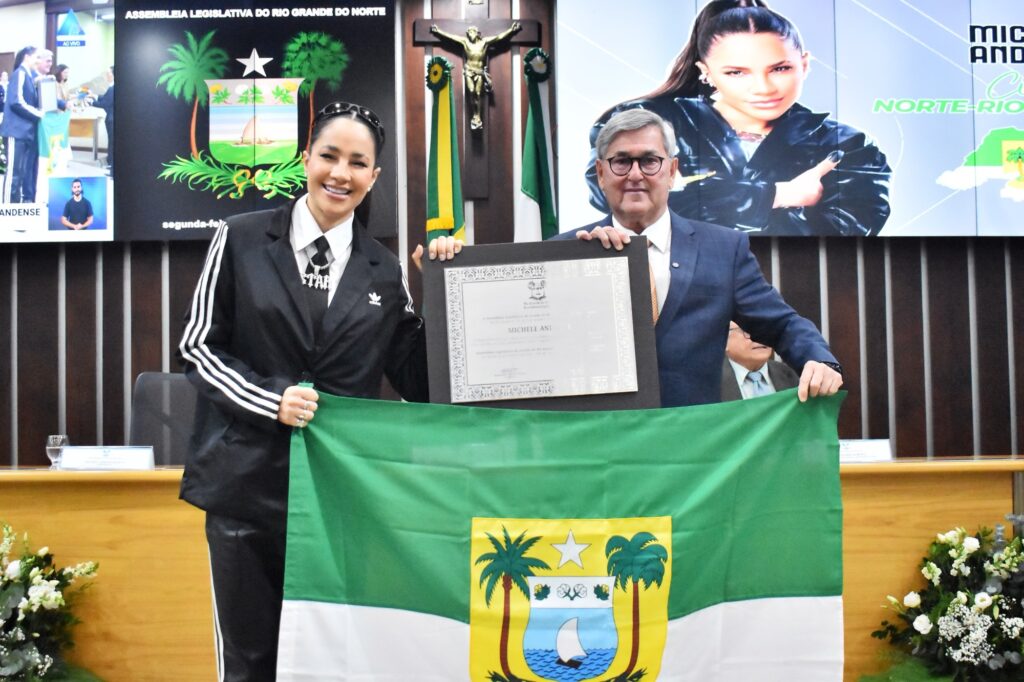 Por sua vez, Tomba Farias destacou ainda a hospitalidade do povo potiguar e disse que a homenageada, que atualmente reside em Natal, representa a cultura norte-rio-grandense. “O Rio Grande do Norte, terra de tradições fortes, de belezas únicas e de um povo acolhedor, reconhece hoje em Michele não apenas uma cantora de destaque, mas uma verdadeira representante da nossa alma cultural”, assinalou.