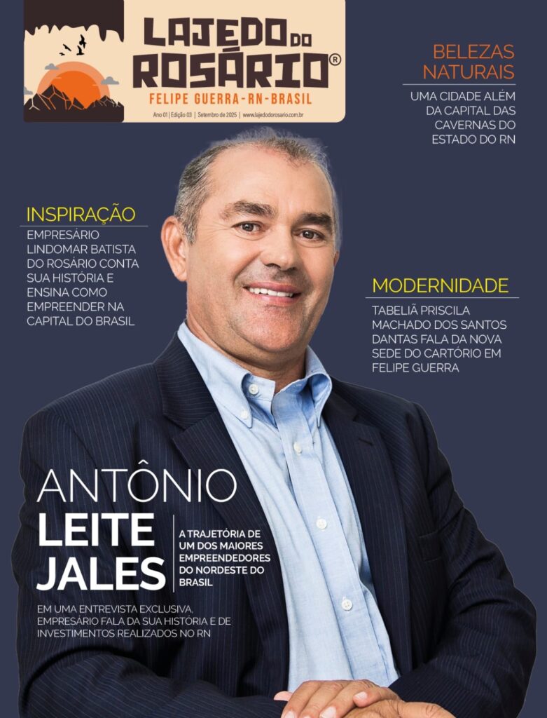 Na sua terceira edição, a revista Lajedo do Rosário traz como destaque maior de capa a consagrada história de um dos maiores empreendedores do Nordeste do Brasil, o fundador do Grupo Ster Bom, empresário Antônio Leite Jales.