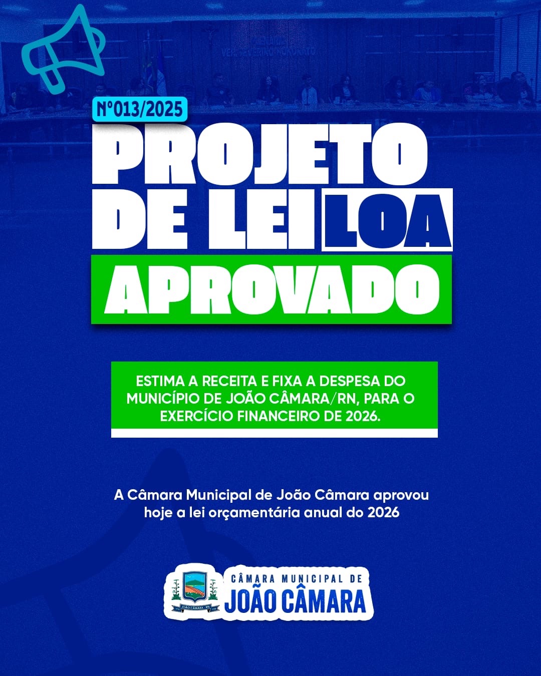 Com a presença dos 13 vereadores, a Câmara Municipal de João Câmara/RN realizou, na manhã desta quarta-feira (31/12/2025), uma sessão extraordinária que resultou na aprovação da Lei Orçamentária Anual (LOA).