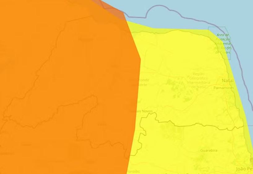 Cidades sob alerta laranja no RN (chuvas de até 100 mm)