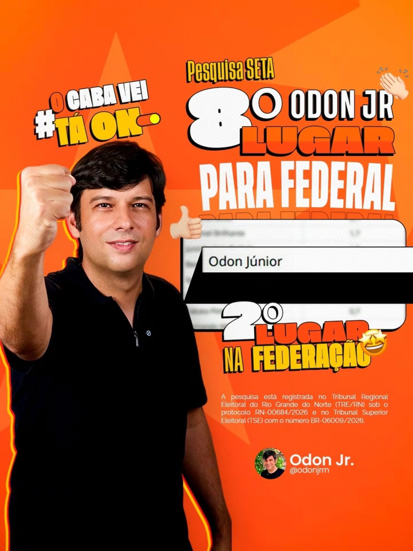 O nome do ex-prefeito Odon Jr segue em evidência no cenário político do Rio Grande do Norte. De acordo com levantamento divulgado pela SETA em parceria com o Blog do Barreto, Odon Jr aparece na 8ª colocação na disputa para deputado federal e ocupa a 2ª posição dentro da federação partidária.