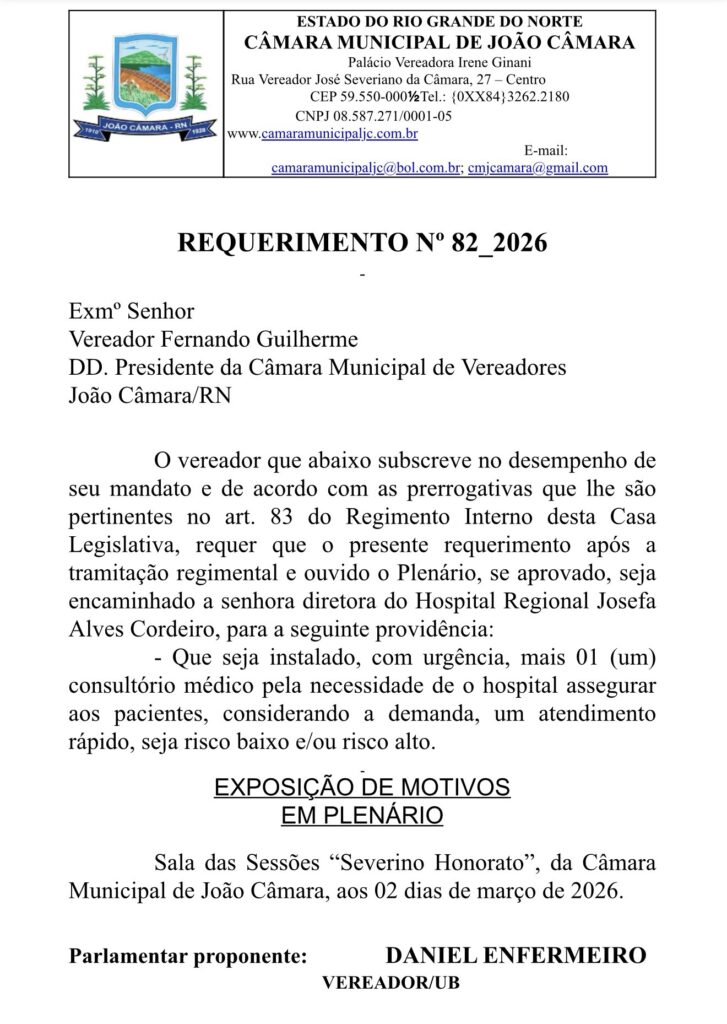 O requerimento (82/26), reforça a necessidade de humanização e agilidade no serviço público de saúde, especialmente em um momento em que a procura pelo hospital tem crescido consideravelmente. A expectativa é que a direção da unidade atenda à solicitação o quanto antes, promovendo as adequações necessárias para ampliar a capacidade de atendimento.