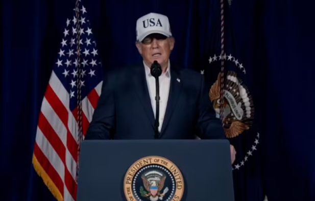 “Há pouco tempo, os militares dos Estados Unidos iniciaram grandes operações de combate no Irã. Nosso objetivo é defender o povo americano eliminando ameaças iminentes do regime iraniano, um grupo cruel de pessoas muito duras e terríveis. Suas atividades perigosas colocam em risco direto os Estados Unidos, nossas tropas, nossas bases no exterior e nossos aliados em todo o mundo. Por 47 anos, o regime iraniano entoou “morte à América” e travou uma campanha interminável de derramamento de sangue e assassinato em massa, visando os Estados Unidos, nossas tropas e pessoas inocentes em muitos, muitos países. Entre os primeiros atos do regime esteve o apoio à tomada violenta da embaixada dos EUA em Teerã, mantendo dezenas de reféns americanos por 444 dias. Em 1983, os representantes do Irã realizaram o bombardeio do quartel da Marinha em Beirute, que matou 241 militares americanos, e em 2000, estiveram envolvidos no ataque ao USS Cole.